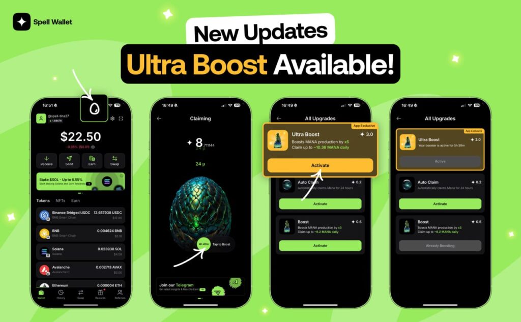 Claim your Ultra Boost in the Spell Wallet App and multiply your MANA!